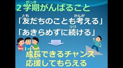 9月1日(金)いよいよ2学期のスタート、今朝は子どもたちが登校している時に短い時間でしたが、すごい勢いで雨が降りました。1校時にリモートで始業式を行いました。まず初めに、2年生と3年生の代表児童が作文発表をしました。2人とも2学期の具体的なめあてがしっかりと決まっていて、素晴らしい発表でした。その後、校長が2学期にがんばってほしいこととして「友達のことも考える」「あきらめずに続ける」について話しました。最後に校歌を歌い、式終了後には3名の先生方から「9月の生活目標~忘れ物をなくそう」「命を大切にする」「生活のリズムを整える」について話があり、子どもたちは最後まで真剣に聞いていました。