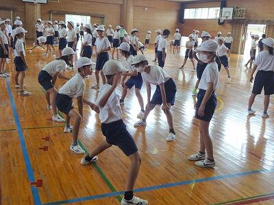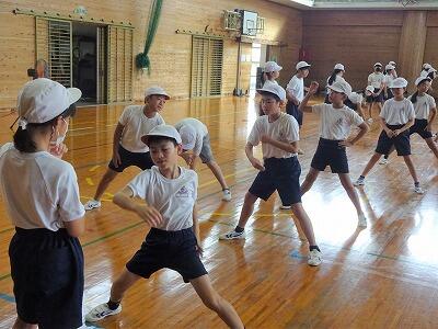 9月5日(火)1校時、5・6年生は体育館で運動会の表現の練習をスタートさせました。6年生は昨年、一度踊っていますが、5年生は今年、初チャレンジです。6年生担任が動きの細かいところまで汗びっしょりになりながら指導していました。子どもたちも5・6年生がそれぞれチェックし合いながら動きを確認していました。これからの練習で、本番どんな仕上がりになるのかとても楽しみです。