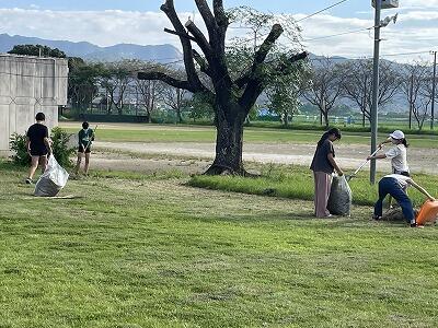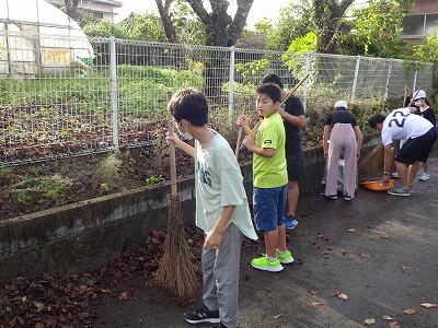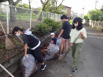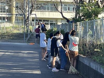 9月6日(水)朝の時間に、6年生がボランティア活動として南門外に落ちたサクラの枯れ葉を集めてくれました。学校横の道路にたくさん落ちていて気になっていたのをきれいに掃き集めてくれました。さすが、6年生です。ありがとう。また、今朝は東海地区青少年育成協議会、PTA役員の方が児童玄関前であいさつ運動に取り組んでくださいました。ありがとうございます。