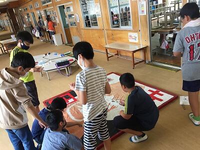 昼休み時間に5・6年の教室がある校舎3Fに上がってみると、6年生の担当の子どもたちが運動会の団装飾の絵制作に取り組んでいました。5年生の教室では、赤白のボンボン作りに取り組んでいました。休み時間ですが、運動会に向けて高学年の子どもたちは自分に任された役割をしっかりと果たそうとがんばってくれています。ありがとう、5・6年生。