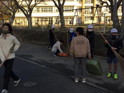 12月8日(水)今週はいい天気が続いています。今朝は少し風が強いですが、たくさんの6年生が外に出て落ち葉や枝集めなどのボランティア活動をがんばってくれています。
