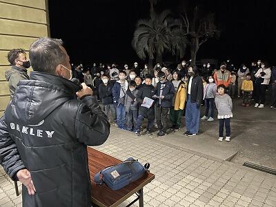 12月3日(金)19:00からPTA生活指導部主催の夜間歩行(歩こう会)が行われました。2年ぶりの開催で50組を超える親子が参加してくれました。真っ暗な田んぼの中を懐中電灯を照らしながら進み、川の堤防を通り、最後はイルミネーションがきれいに輝く通りを楽しみながら、およそ1時間30分かけて学校にゴールしました。事前に「校長先生は何歩でゴールするでしょう?」という予想クイズが出されていて、近かった6名の子どもたちが賞品をゲットしました。ちなみに9085歩でした。参加してくださった保護者の皆さんと子どもたち、そしてPTA役員の皆様、お疲れ様でした。