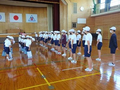 5月18日(木)2校時、これからの梅雨・台風シーズン時の風水害に備えて、児童の安全な下校並びに迎えの保護者への引き渡しができるように、全校児童が地区ごとに分かれて集まって確認を行いました。それぞれの教室で各地区の1生から6年生までが顔合わせをし、同じ地区のメンバーを確かめることができました。今後、風雨が強くて下校時に心配がある場合は地区ごとの集団下校を行います。その際は学校メールでお知らせしますので、保護者の皆様の家庭でのご対応をよろしくお願いいたします。