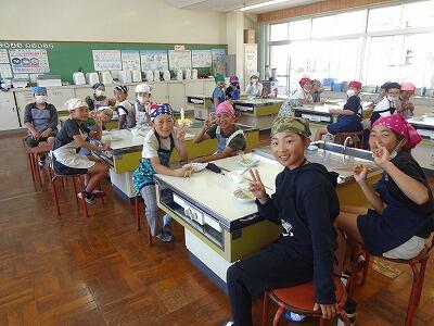 5月26日(金)1・2校時、24日に引き続き、今日は5年2組が調理実習挑戦です。5年生は音楽と家庭科で学級担任の交換授業をしているので、2組も1組担任の先生の指導で調理に取り組みました。男子グループが作ってくれたものを試食しましたが、上手くできていておいしかったです。