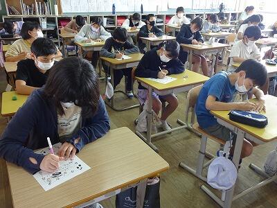 4月18日(火)2・3校時、6年生は全国学力テストに挑戦しています。本年度は国語と算数の2教科と学習・生活についての質問紙に回答します。3校時には、空きスペースに書き込みをしながら、算数の問題解決に真剣に取り組んでいる様子が見られました。質問紙にはタブレットPCを使い、個人のIDとパスワードでログインしてWEB上で回答していました。