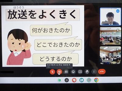 12月6日(水)3校時に避難訓練を行いました。まずはじめに、各教室をオンラインで結んで、担当の先生から「避難時のポイント」についての話がありました。その後「理科室から火災が起きた」という想定で、教室から外への避難を実際に行いました。どの学年の子どもたちも真剣に取り組んでいました。これからの季節、火災には特に用心していきたいと思います。