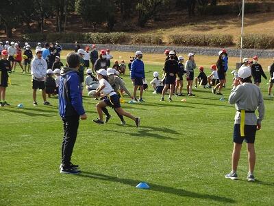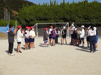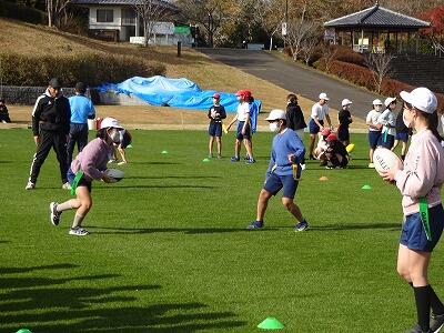 12月8日(金)西階運動公園に市内の6年生が集まって「延岡市スポーツフェスタ」が開催されています。本校の6年生は午前中、タグラグビーとティーボールに参加しました。初めに基礎的な動きを教えてもらって、後半はゲームに挑戦。各チームは違う学校のメンバーで構成されていて、スポーツを通して楽しく交流することができました。午後からは、生涯スポーツ、50m走にチャレンジです。