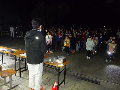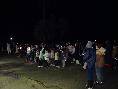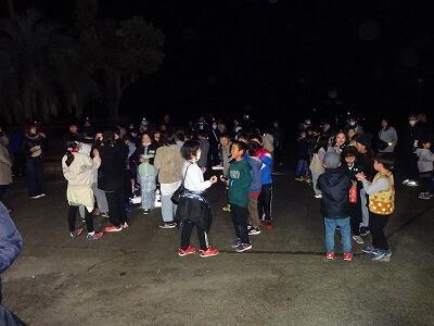 12月8日(金)PTA生活指導部主催の夜間歩行(歩こう会)が行われました。今年も150名を超える親子が参加してくれました。19:00に学校をスタート。最初は真っ暗な田んぼの中のコースですが、参加賞として子どもたちが腕に付けた「光るブレスレット」のいろいろな明かりの色がきれいに見えました。川の堤防を通り、クリスマスイルミネーションがきれいな通りを歩いてゴールです。今年も出題された「校長先生は何歩でゴールするでしょう?」というクイズ、今回は9368歩でした。参加してくださった保護者の皆さんと子どもたち、そしてPTA役員の皆様、お疲れ様でした。