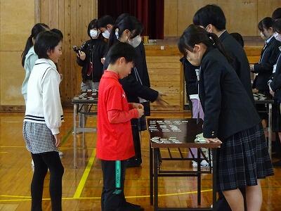 12月に入って児童会の運営委員会を中心に取り組んだ赤い羽根共同募金「地域歳末たすけあい運動」、たくさんのご協力をいただき、本当にありがとうございました。12月21日(木)昼休み時間に延岡市社会福祉協議会の方に来ていただいて、集めた募金を代表児童がお預けしました。地域のために大切に使っていただけるとうれしいですね。