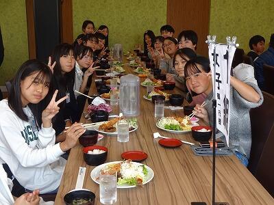 青島屋で昼食です。朝が早かったので、みんなお昼ご飯が待ち遠しかったようです。食後はさっそくおみやげを見て回っていました。