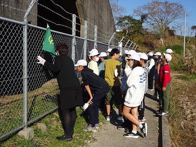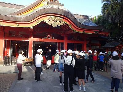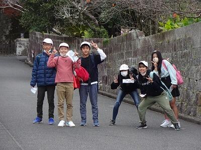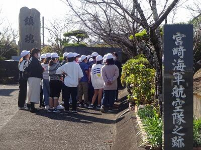 お世話になったホテルを出発して、青島に向かいました。海岸や青島神社周辺を散策しました。その後、宮崎特攻基地遺構に移動して、平和学習を行いました。