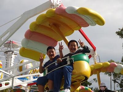 修学旅行最後の目的地、フェニックス自然動物園にやってきました。まずは芝生広場でみんなで弁当を食べました。食べた子どもたちから、動物や遊具のところへ足早に駆けていきました。乗り放題チケットを存分に使って、乗り物を満喫することができたようです。子どもたちの笑顔が輝いていました。