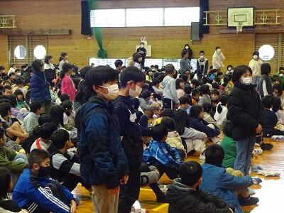 2月になりました。2月1日(木)朝の時間に、体育館で全校朝会を行いました。まずは校長が1月1日に起きた能登半島地震の被害を振り返りながら、地域の津波避難場所についての確認の話をしました。その後、2月の生活目標「1年間の学習をまとめよう」について担当の先生から、”記憶”がキーワードのクイズ形式のお話がありました。最後に、延岡市BFC防火作品展入賞者の紹介、表彰を行いました。2月もしっかりとがんばってほしいと思います。