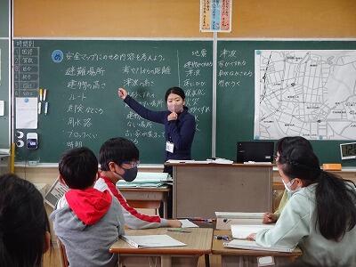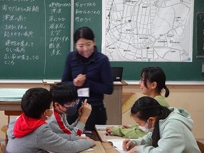 2月5日(月)3校時、5年2組で1年目の先生の研究授業(4回目)がありました。今回は総合的な学習の時間で「地域の防災安全マップを作ろう」というテーマで、どんな情報をマップに載せるとよいかについてグループや全体で話合いをしました。今回の話合いを生かして、フィールドワークに出かける予定です。地震、津波について自分事としてしっかりと学び、考えてほしいと思います。