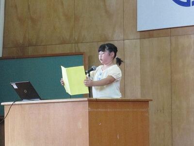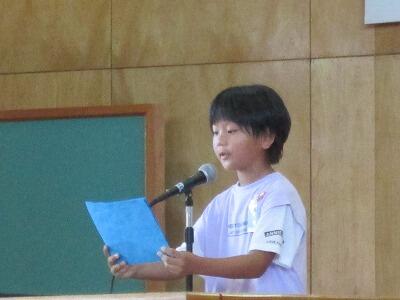 2年生と4年生の代表児童が、1学期にがんばったこととこれから続けたいことについて作文発表しました。
