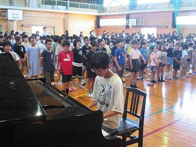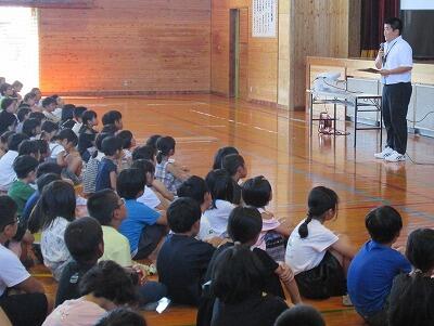 校長からは、夏休みにがんばってほしいことについて伝えた後、夏休みだからこそできる体験をしてほしいと話しました。