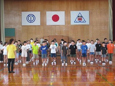 朝6時に起床し、岡富小学校と合同で「朝のつどい」をしました。