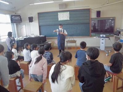 本校の4年生が、野口遵記念館で堂々の演技を披露しました。