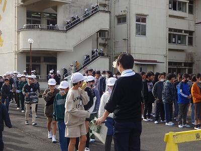 12月6日(水)3校時に避難訓練を行いました。まずはじめに、各教室をオンラインで結んで、担当の先生から「避難時のポイント」についての話がありました。その後「理科室から火災が起きた」という想定で、教室から外への避難を実際に行いました。どの学年の子どもたちも真剣に取り組んでいました。これからの季節、火災には特に用心していきたいと思います。