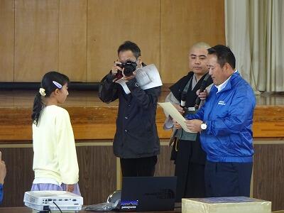 11月9日(木)3校時、県北法人会延岡支部青年部会の皆様にご来校いただいて、6年生を対象とした租税教室がありました。初めに”税金住職”さんから「税金について」のお話を聞いた後、①「若者の定着する街づくり」②「教育と福祉の充実」③「災害に強い街づくり」を公約とした3人の市長候補者に対する模擬選挙を体験しました。開票作業の間に「1億円のレプリカ」を見せていただき、その後、発表された当選者は③「災害に強い街づくり」公約の候補者でした。6年生が本校区の地域性についてよく理解し、思いをもっていることがわかりました。多くのことを学んだ45分でした。いろいろな準備をしてくださった県北法人会延岡支部青年部会の皆様、ありがとうございました。