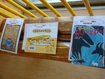 11月の生活目標は「読書をしよう」です。それに伴って「読書祭り」開催中です。図書委員会による「図書クイズ」、お昼の放送での「新書紹介」、イベント参加児童には「もう一冊借りられるカード」や「手作りしおり」プレゼント、本の中に隠された「図書委員会特製しおり」がゲットできるなんてものもあります。先生方の「おススメの本」の紹介もあります。この機会にたくさんの本を手にとって、読書に親しんでほしいです。