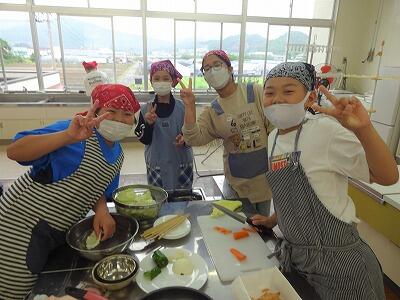 6月1日(木)1・2校時、今日は6年1組が家庭科で調理実習に取り組んでいました。今回は「野菜いため」に挑戦、先生の話をよく聞きながら、グループで協力して調理していました。