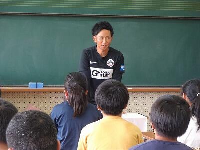 7月12日(水)3校時、延岡市キャリア教育支援センターのご協力で6年生の「よのなか教室」を開催しました。講師はNPO法人Ganar代表理事:富高和幸さんです。富高さんはサッカーのプロを目指すために単身アルゼンチンに渡られた経験をもとに、「世界」基準でご自身が感じたこと、考えたことをエピソードを交えてお話しくださいました。「見て感じて自分で考える」「無理か無理じゃないかは自分で決める」「チャンスをつかめるかは自分の準備しだい」などなど、子どもたちの胸に刺さる言葉を伝えてくださいました。子どもたちが前のめりになって聞いている姿も印象的でした。富高さん、ありがとうございました。