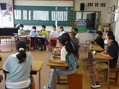 8月25日(金)15:00から音楽室において、コミュニティ・スクール熟議「しゃべり場」を開催しました。学校運営協議会委員の皆様、校区内の区長・公民館長の皆様14名をお迎えして「子どもの安全」をテーマにグループ協議を行いました。各グループにおいて、文字どおり、学校職員と地域の方との積極的な「おしゃべり」が展開され、とても有意義な時間となりました。この場で出された貴重なご意見を「子どもたちの安全」につなげられるように今後取り組んでいきたいと思います。ご参加いただいた皆様、本当にありがとうございました。