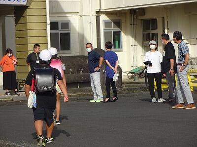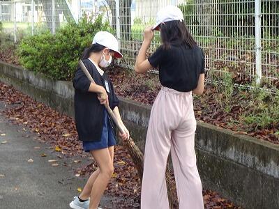9月6日(水)朝の時間に、6年生がボランティア活動として南門外に落ちたサクラの枯れ葉を集めてくれました。学校横の道路にたくさん落ちていて気になっていたのをきれいに掃き集めてくれました。さすが、6年生です。ありがとう。また、今朝は東海地区青少年育成協議会、PTA役員の方が児童玄関前であいさつ運動に取り組んでくださいました。ありがとうございます。