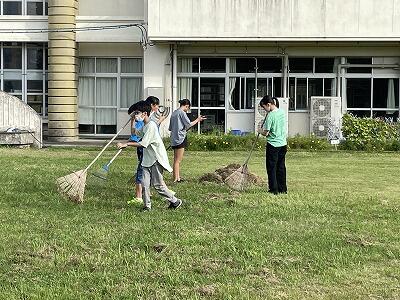 本年度は8月20日(日)に延岡市郷土芸能大会が行われる予定です。4年生は発表に向けて、今日も暑い中、練習を続けています。7月24日(月)今日は、その発表の際に使用する伝馬船をきれいにするために、本校の学校運営協議会委員でもあるリバーパル五ヶ瀬川の館長さんとお手伝いの方が来校してくださいました。しばらくの間、使用していなかったので作業が大変だったと思います。暑い中、子どもたちのために本当にありがとうございます。