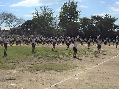 午前中の結構な雨で運動場は水たまりになってしまいました。明日の全校体育はちょっと難しいかもしれません。今日の昼休み時間もリーダー達の元気な応援練習の声が響いています。がんばっています。