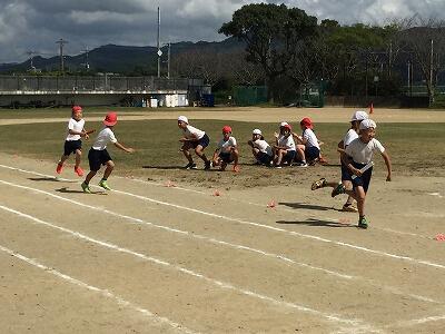 4年生は川島ふれあい公園に出かけました。クラスごとに「だるまさんがころんだ」をしていました。