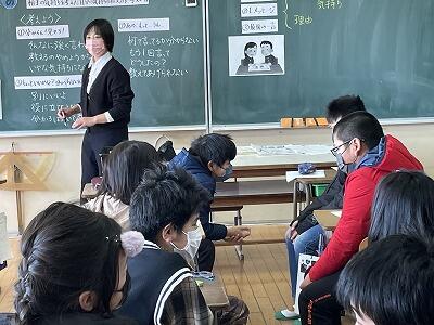 6年2組ではペアプロの取組で、話合いの授業を市教委の指導主事の先生に参観していただきました。授業後、クラスの子どもたちにも課題やアドバイスについて話してくださいました。担任もフィードバックでの指導助言をもとによりよい授業に向けて研究を深めていきます。
