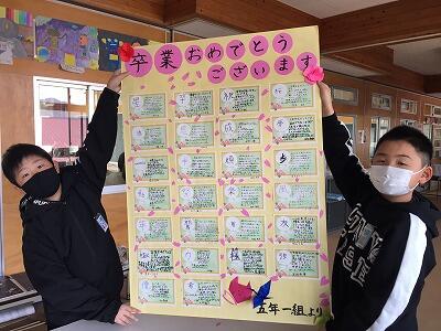 3月24日(木)卒業式当日です。1校時終了後、式に参加できない1~5年生の子どもたちが教室前に並んで、来てくれた卒業生たちを拍手でお見送りをしました。卒業生、在校生それぞれにたくさんの笑顔が見られました。