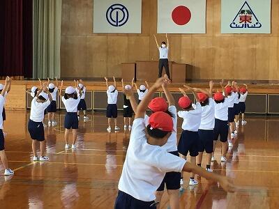 9月8日(水)早朝は雨が降っていたのですが、授業が始まるころぐらいには太陽が顔を出し、蒸し暑い1日となりました。今日の3時間目は、体育館で1年生が表現の練習をしていました。どんな動きも愛らしく見えるのが1年生です。暑い中、よくがんばっていました。