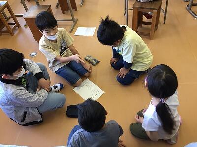 4校時、1年生は生活科で「こうていたんけん」。昨日とは打って変わってのお天気の中、春の生き物探しをしていました。何かを発見したのか、元気な歓声が聞こえていました。