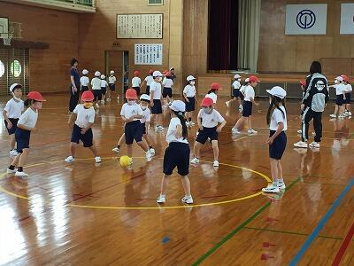 2年生は4校時、体育館で転がしドッジボールをしていました。跳んだり走ったりしながら、上手に転がってくるボールをよけていました。
