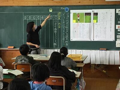 5月11日(火)3校時、採用2年目の先生が国語の研究授業を行いました。4年1組の児童が、説明文の各段落にどのような内容が書かれているかを読み取りながら、先生の指示や発問に沿ってワークシートにまとめていきました。本年度採用1年目の先生2名も参観し、授業の進め方について学びを深めていました。