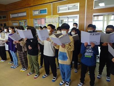 2月7日(火)卒業式当日までのカウントダウンカレンダー(登校する日)も「30」日となりました。5校時、6年生は教室前のスペースで卒業式に向けての心構えについて話を聞き、その後、式当日歌う曲の練習を1・2組合同で行いました。あのメロディが聞こえてくると「もうすぐ卒業するんだなあ」という思いがわき上がってきます。小学校の残りの日々を大切にしながら過ごしてほしい思います。