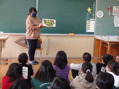 3月9日(木)朝の時間、今週月曜日に引き続き「ティンカーベル」さんによる読み聞かせ会がありました。本日は5名の方が来校され、1・2年生それぞれのクラスに分かれて、選んでいただいた絵本の読み聞かせをしてくださいました。目を輝かせて聞きながら、身を乗り出して絵本の場面をのぞき込んでいる子どもたちもいました。地域の方々のおかげで、子どもたちに温かい心が育っていると思います。