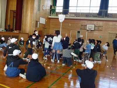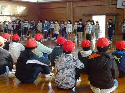3月10日(金)今日は子どもたちが楽しみにしていたお別れ集会・遠足の日です。前半は、各学年と6年生が「ミニ運動会」で交流しました。1年生と2年生は「玉入れ」、3年生は「台風の目」、4年生は「障害物リレー」、5年生は「綱引き」を6年生といっしょに楽しみました。計画そして進行をしてくれた5年生の運営委員会の皆さん、ありがとうございました。