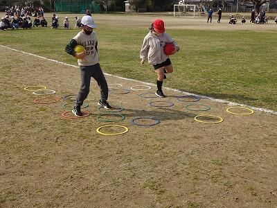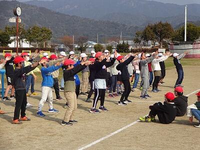 1月19日(木)午後からは風が強くなってきました。5校時、4年生はこの強い風の中、運動場でなわとび運動に取り組んでいました。時折吹いてくる強風に、がんばりカードを飛ばされ追いかけながらも、元気いっぱい跳んでいました。