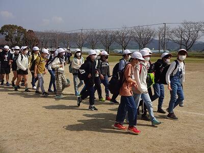 3月10日(金)「ミニ運動会」交流で盛り上がった後はお楽しみの遠足、大武運動公園に出かけました。お別れ遠足で校外に出かけるのは久しぶりで、初めて大武運動公園に行く学年も結構ありました。歩道があって安全に移動できる延岡星雲高校周りのコースを歩いて、無事に現地到着。広場に集まって注意事項を聞いた後は、お楽しみのお弁当タイム。全校みんなで楽しい時間を過ごすことができました。