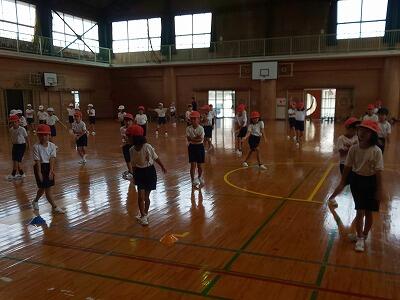 そして、非常ベルと教頭先生からの緊急放送のあと、各学年に与えられた避難経路で運動場まで避難しました。緊急放送から避難完了まで3分28秒でした。3分台で避難できたのは立派だと思います。