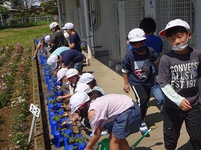 5月15日(月)新しい1週間が始まりました。週末はスッキリとしないお天気でしたが、今朝は日差しが心地よく感じます。1年生もずいぶんと学校生活に慣れたようで、登校後には生活科で栽培を始めたアサガオの水やりをがんばっていました。3校時は音楽で「ぶんぶんぶん」のリズムに合わせて手拍子をしたり、友達と手を合わせたりしながら曲の感じをつかんでいました。2年生は生活科の「大きくそだて、わたしのやさい」の学習で、水やりをしたり、タブレットで苗の様子を写真に残したりしていました。どちらの学年も1週間のいいスタートができているようです。本日より午後は、保護者個人面談が始まります。保護者の皆様、どうぞよろしくお願いいたします。
