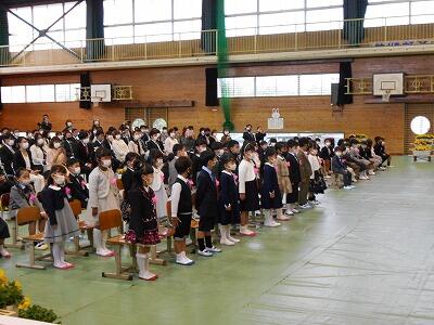 氏名点呼では「はいっ」と手を挙げて起立し、祝福の「おめでとうございます」には「ありがとうございまーす!」と元気よく返事をし、お祝いの言葉もしっかりと最後まで聞くことができました。とっても立派な1年生です。