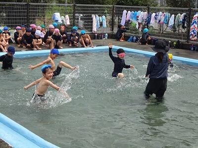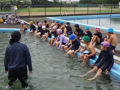 6月26日(月)です。今日から各学年のプールでの学習がスタートします。2・3校時、プールびらき一番乗りは2年生です。先生の注意をよく聞いて、まずはシャワー、子どもたちの大きな声が響き渡っていました。その後、小プールを使ってバディの確認の後、水慣れをして、動物の動きをイメージしながら水の中で大きく体を動かしました。