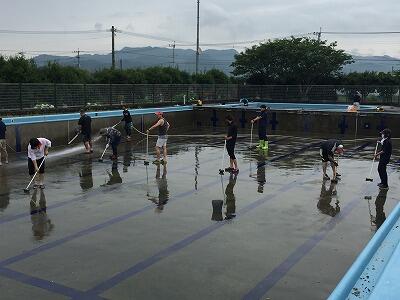 6月19日(日)本日、第1回PTA奉仕作業を行っています。日曜日の早朝からの実施にかかわらず、たくさんの保護者の皆様にお集まりいただきました。6:00過ぎには草刈り機を使っての作業がスタート、8:00前後にはたくさんの方が加わって、草集め、草抜きなどの作業を学校の敷地内全体で進めていただきました。今回はプール清掃もしていただきました。1年間使っていないプールの清掃は本当に大変です。ホースや高圧洗浄機等を使いながら、大人の力でみるみるきれいになっていきました。明日、6年生の子どもたちと仕上げをしていきたいと思います。2年間実施できなかったこのPTA奉仕作業、”マンパワー”のすごさを改めて実感したひとときでした。本日参加してくださった保護者の皆様、本当にありがとうございました。