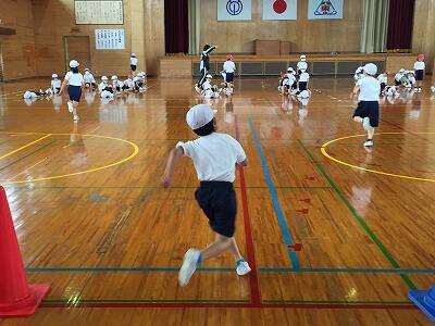 4月16日(金)今日は、午前中のうちから雨がぱらつき始めました。体育の時間も外には出られませんでしたが、そんな中でも元気いっぱいの2年生は、体育館でいつものパワーを全開です。コーンを使ったおにごっこやグループ対抗折り返しリレーで、全員が思いっきり走ってがんばっていました。