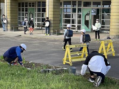 5月9日(火)朝の時間帯、朝のボランティア活動に取り組む6年生の姿が多く見られました。昨日の授業を受けて、リクエストに応える形で運動場のトラックの草取りをがんばる子どもたちやカードを持って「おはようございます!」と声を出しながらあいさつ運動に取り組む子どもたちなどなど、最上級生としてがんばりたいという気持ちが伝わってきてとてうれしかったです。すぐに実行に移せるところが立派だと思います。今後も自分たちのアイデアで、楽しさややりがいを感じながらがんばってほしいです。
